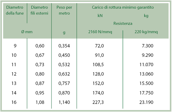 – il carico di rottura dei cavi acciaio espresso in Kg o kN.