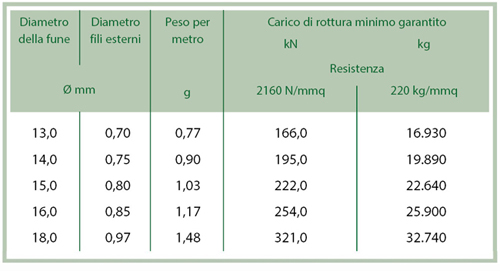 Rimandiamo ai links “Consigli D’uso” e “Caratteristiche per le funi metalliche” per tutte le caratteristiche d’uso e manutenzione.