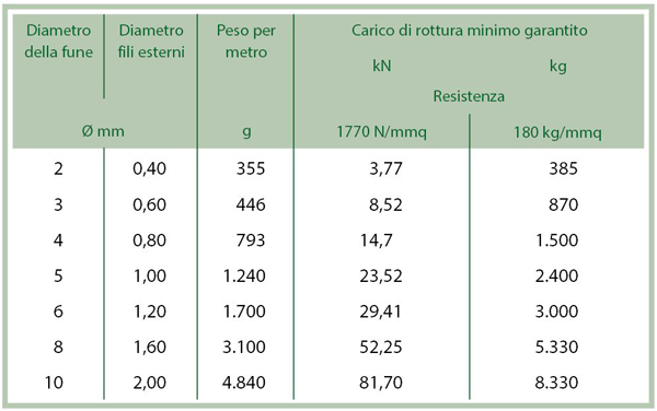 Rimandiamo ai links “Consigli D’uso” e “Caratteristiche per le funi metalliche” per tutte le caratteristiche d’uso e manutenzione.