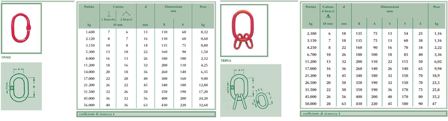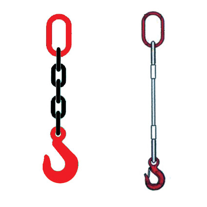 Si tratta di funi di acciaio con anima tessile o metallica aventi alle estremità determinati attacchi che consentono il collegamento con i ganci delle gru, con i carichi da sollevare. Il D.P.R. n. 459 del 24/07/96 (Direttiva Macchine) impone che il calcolo del coefficiente della fune debba tenere conto dell’efficienza dei terminali. Il coefficiente di sicurezza per tiranti acciaio è 5.