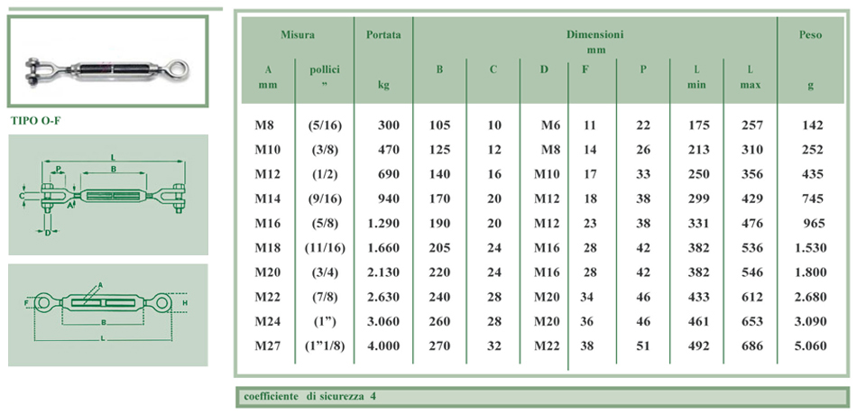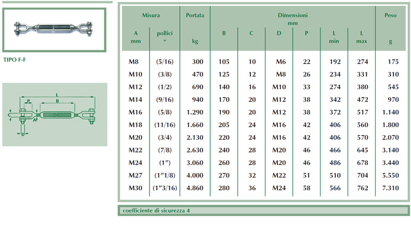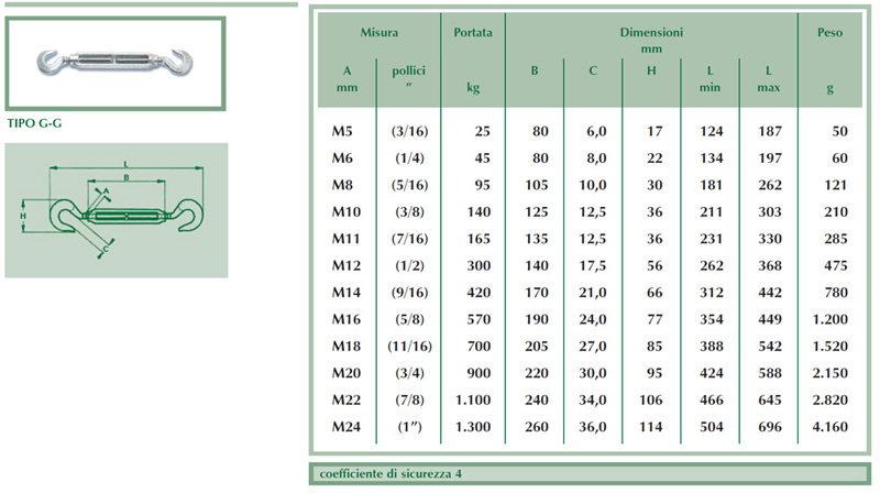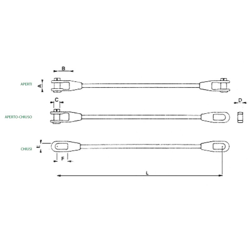 Tiranti in acciaio: sono forniti con certificato di conformità e sono provviste di una targhetta di identificazione che attesta la portata, il nome del fabbricante, il numero di certificato ed il marchio “CE”.
