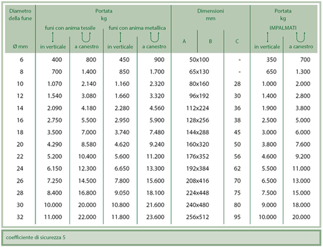 La lunghezza minima è: 50 volte il diametro della fune per il tipo AA/T – AA/M; 33 volte per il tipo RR/T – RR/M; 100 volte per il tipo impalmato.