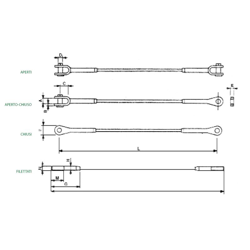 Gli accessori per i tiranti sono: redance, manicotti, campanelle, tenditori, morsetti.